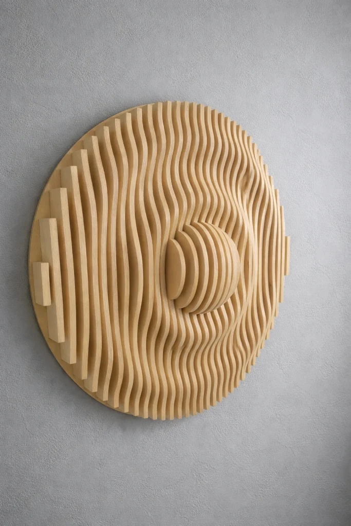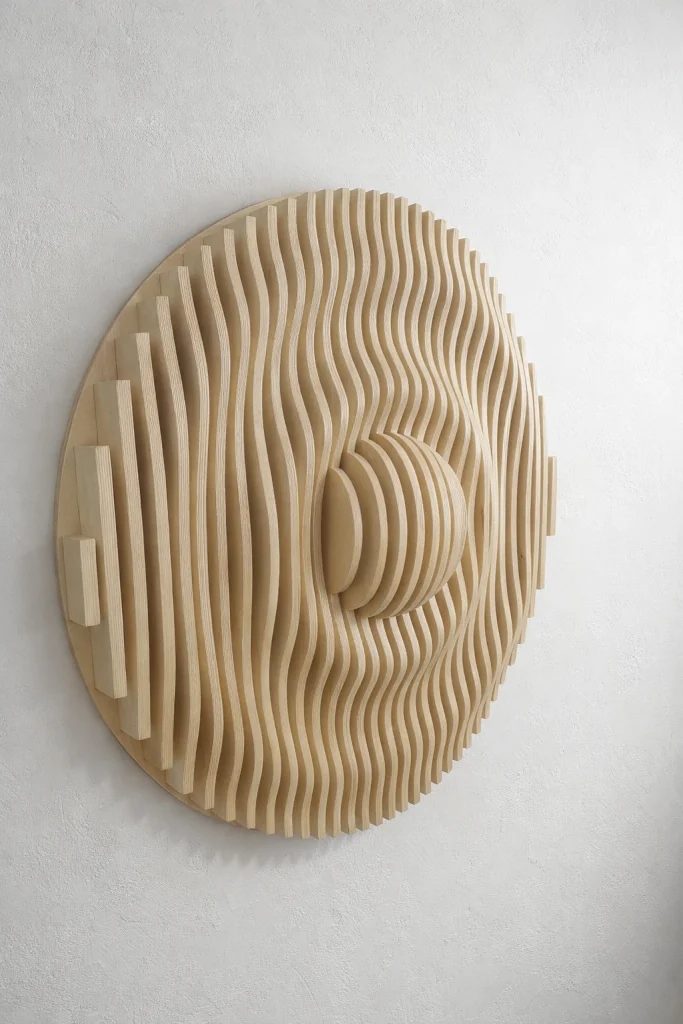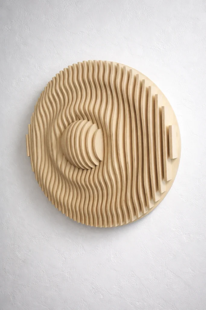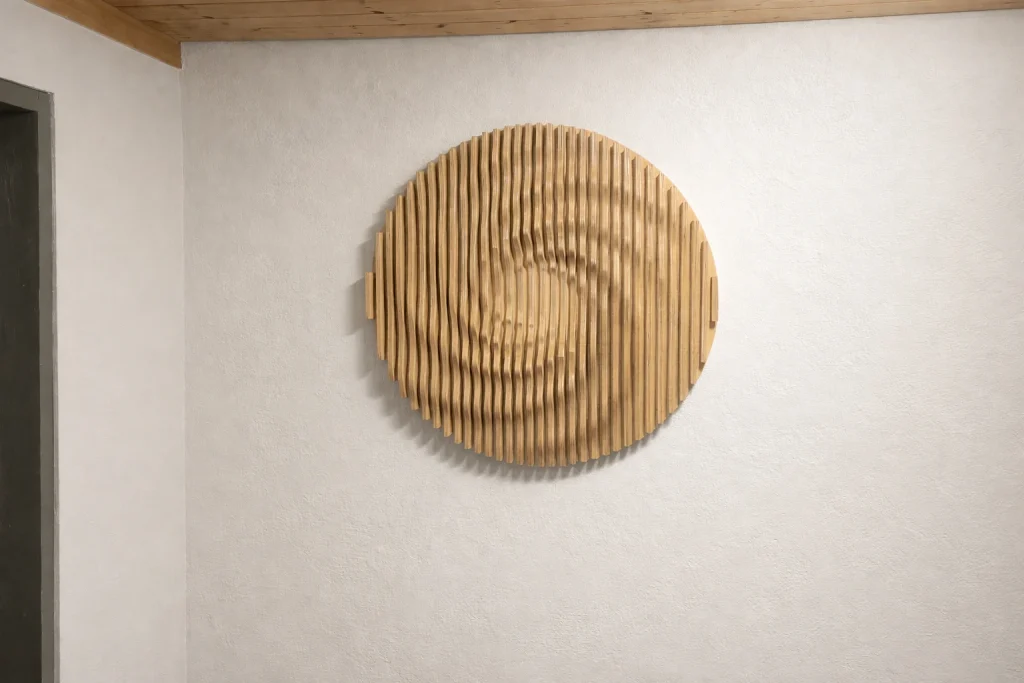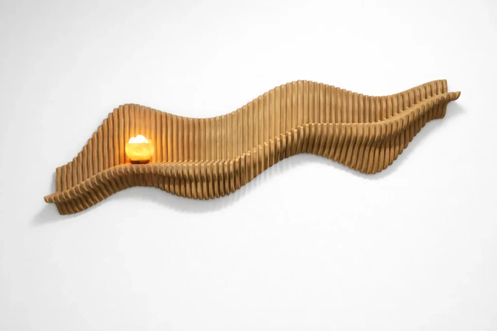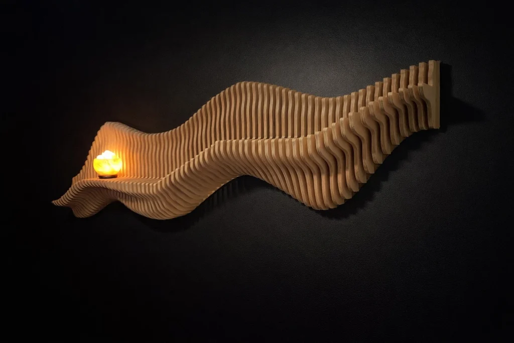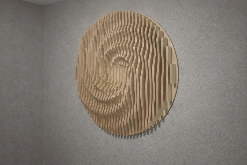 Muodon, valon ja varjojen veistämä seinäteos tekee tilasta kiinnostavan – ja toimii samalla akustisena elementtinä. Valitse valmis malli tai toteutetaan teos sinun mittojen ja pintakäsittelyn mukaan.