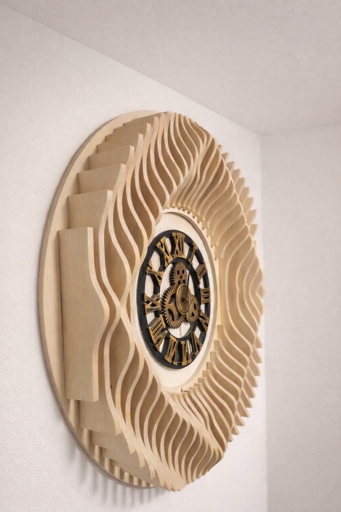 Vaikka käytämme tarkkaan valittuja teriä ja optimoituja työstöasetuksia, jokainen osa viimeistellään myös käsin. Teokset hiotaan huolellisesti, jotta lopputulos on mahdollisimman laadukas ja valmis suoraan seinälle.